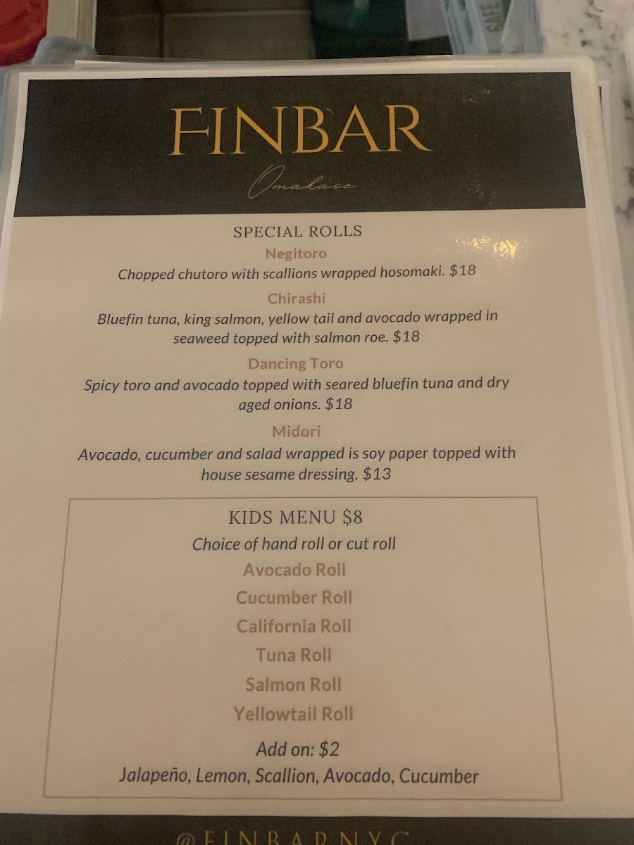 Overall, the menu at Finbar Sushi NYC delivers a well-rounded and satisfying experience that highlights both freshness and craftsmanship. The selection feels thoughtfully curated, with classics like Sushi presented with precision and balance, while the Salmon Sashimi stands out for its clean, buttery texture and vibrant flavor. The inclusion of Mackerel adds a slightly bolder, more complex note to the lineup, appealing to those who appreciate a richer taste profile. Together, these standout dishes reflect a menu that stays true to traditional Japanese techniques while remaining approachable and consistent, making it a dependable choice for both casual diners and sushi enthusiasts alike.